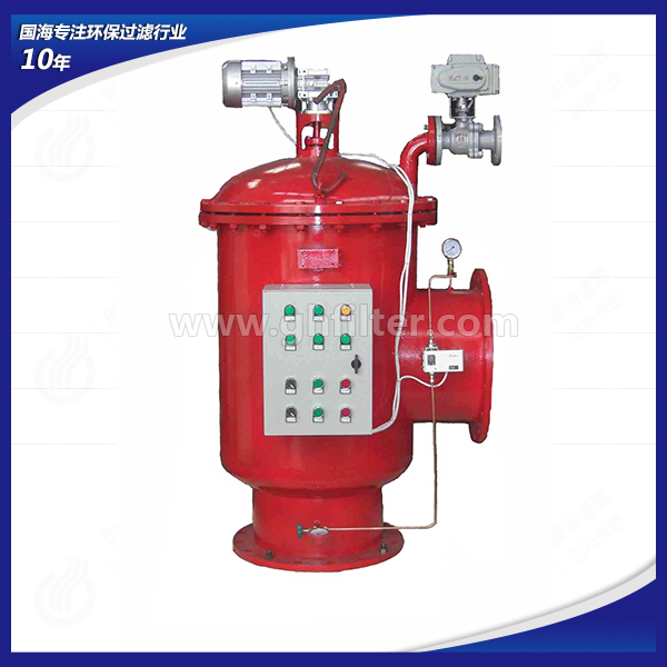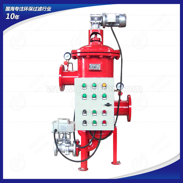 全自動自清洗過濾器產品結構功能設計,結構緊湊,過濾面積大,納污量高,管路壓損小,電源能耗低;優化的控制方式設計,反洗時間短,排污耗水量少,節約水資源;產品線覆蓋各流量及精度范圍,多種結構形式,適應用戶復雜工況;各參數可按實際工況進行調整,操作簡便,免維護,壽命長。自清洗過濾器過濾精度默認為 100 微米,且從 10至 3000 微米可選,過濾面積大,納污量高,用戶可根據實際工況定制。清洗方式簡單,且清洗循環電子監控,可實現自動清洗排污。用全自動自清洗過濾器控制系統中的各參數均可調節。設有電機過載保護,可有效保護電機。國海全自動自清洗過濾器由殼體、多元濾芯、反沖洗機構、電控箱、減速機、電動閥門和差壓控制器等部分組成。殼體內的橫隔板將其內腔分為上、下兩腔,上腔內配有多個過濾芯,這樣充分利用了過濾空間,顯著縮小了過濾器體積,下腔內安裝有反沖洗吸盤。